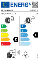 Ziemas riepa ar M+S un 3 PMSF atzīmēm, Royalblack Royal Snow 265/60 R18 110T 3PMSF nodrošinās jums optimālu drošību uz sniegotām vai sasalusi ceļiem. Tas ir paredzēts pasažieru automobiļiem, un tā 4 dziļās rievas ļauj izvadīt lietus un nodrošina interesantu pieķeršanos. Jūs novērtēsiet tā stabilitāti un braukšanas komfortu.