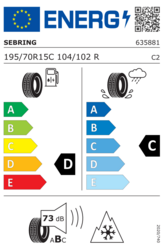 • Stingra ziemas riepa jūsu komerctransportlīdzeklim: SEBRING Formula VAN+ Winter ir īpaši izstrādāta furgoniem un vieglajiem komerctransportlīdzekļiem. Tās pastiprinātā struktūra ļauj izturēt lielas slodzes. Pat zem smagas slodzes, šīs Sebring ziemas riepas nodrošina lielisku saķeri uz slapjiem un sniegotiem ceļiem, un tās ir piemērotas ziemas apstākļiem, piemēram, sniegam, ledum un lietum.
